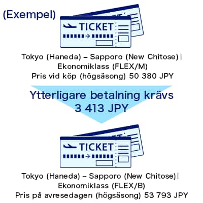 Om du på avresedagen byter till en annan avgång med samma rutt på flygplatsen och har en ändringsbar biljett kan en prisskillnad tillämpas beroende på platstillgång.