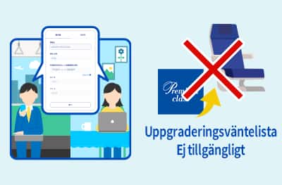 Det går inte ansöka om en plats på väntelistan för uppgradering via ANA:s webbplats eller app på flygplatser med det nya systemet. Om du vill ansöka om en plats på väntelistan för uppgradering kontaktar du personalen på flygplatsen.