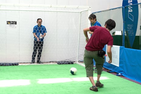 Given that the events were held on a Saturday and Sunday during the summer holidays, a great number of people were using the airport and many took part in the activities. Those who played Football 5-a-side ( blind soccer ) commented how difficult it was to play while blindfolded, while those trying out the expanding ink pen art were impressed with how well their own efforts turned out.