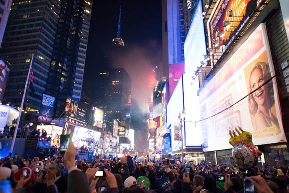 夕方からはライブ演奏やダンスなどのパフォーマンスが披露され、徐々にボルテージがアップ。カウントダウンは60秒前から。花火が打ち上がり、周りの人々と一緒に新年をお祝いします。ニューヨーク名物のボール・ドロップもお見逃しなく!