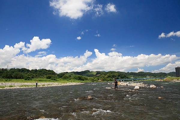 古くは鮎川とも呼ばれ、今も相模湾からの天然ソ上がある相模川。支流の中津川を含め、首都圏のアユ釣りファンにとっては貴重なアユ釣りフィールドで、本流の釣り場は津久井湖(城山ダム)から下流の広範囲。上大島、葉山島、水郷田名、望地と各所にオトリ販売所があり、水郷田名の高田橋周辺は、毎年メーカー主催のアユ釣り競技会の会場にもなっている。