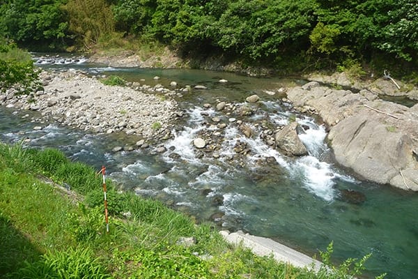 地図上では由良川が正式名称。美山漁協が管轄する由良川の最上流部から大野ダムまでの区間が、アユ釣りファンの間でそのように呼ばれる。京都、滋賀、福井の県境の森から流れる川は、周囲に山里らしいのどかな風景が残り、釣れるアユの食味も大変よい。おすすめは道の駅「美山ふれあい広場」周辺。漁協もありシーズンをとおして釣果も安定している。