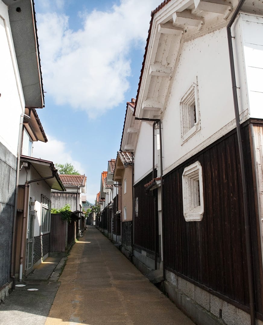 町を歩くと、宿場町らしいしっとりとした雰囲気。蔵が建ち並ぶ「蔵通り」、昔の商家が残る「カリヤ通り」などの散策も楽しい。商家は屋根のヒサシが1.2mと長く張り出し、主に雪よけ用。また雨の日は笠(傘)いらずで、江戸期のアーケードの役割だった。