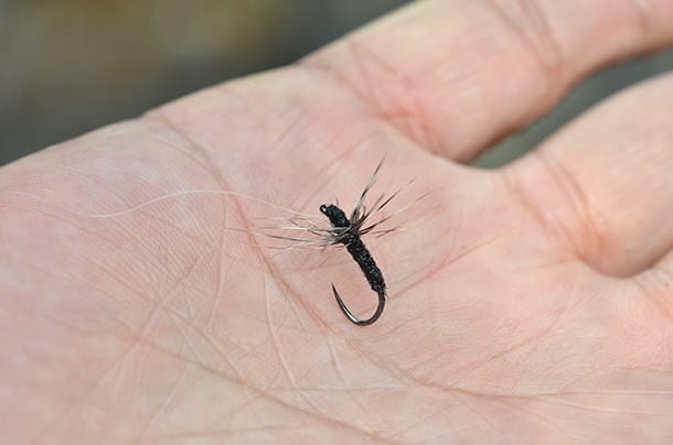 ビギナーの場合、テンカラザオは3.3~3.6mくらいの短めのタイプがおすすめですが、あとはそこに少し太めで色の付いたライン、透明なハリス、毛バリを結べばすぐに釣りができます。