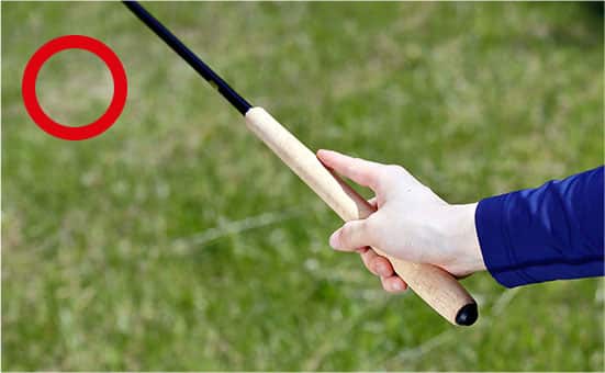 ギュッとこぶし全体に力を入れて握ってしまうのは、一見すると力が入りそうですが、まっすぐサオを振りにくいのでよくありません。