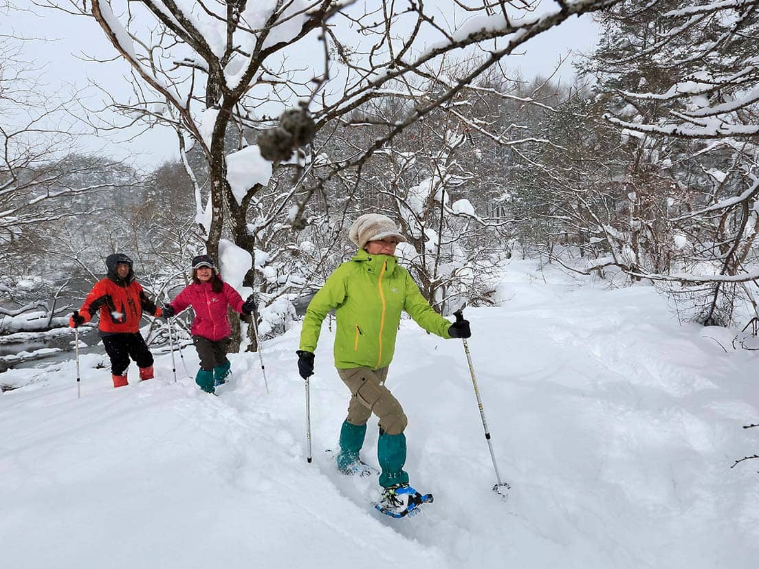 冬の裏磐梯には自然の中で楽しめる他のアクティビティもあります。スノーシューを使ったトレッキングもそのひとつ。ワカサギ釣りと同じように、道具は現地でレンタルできるので、思い立ったらすぐに挑戦できます。そしてたっぷり身体を動かしたら、裏磐梯名物の会津山塩ラーメンを食べれば身体も温まります。