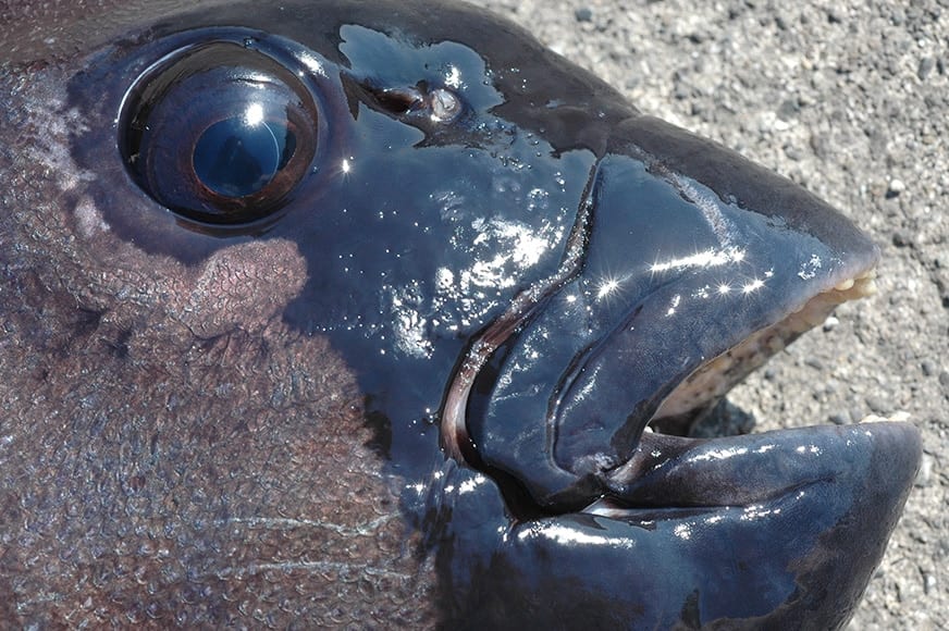 左右4枚の歯が癒合した鋭いクチバシ状の口を持ち、大型になると魚というよりも爬虫類、あるいは獣を思わせる独特の風格を備えるイシダイ。釣り人はその迫力と好敵手ぶりから、この魚を「磯の王者」と称える。なかには〝イシダイ師〟と呼ばれ、この魚だけに深く魅入られた釣り人たちが存在するほどだ。