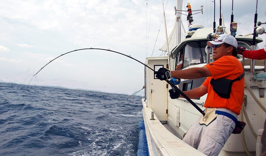 ムロアジなどの小魚をその日にサビキで釣ってからエサにする泳がせ釣りと、季節により幅広い水深をねらうジギングの2つが主に行なわれている