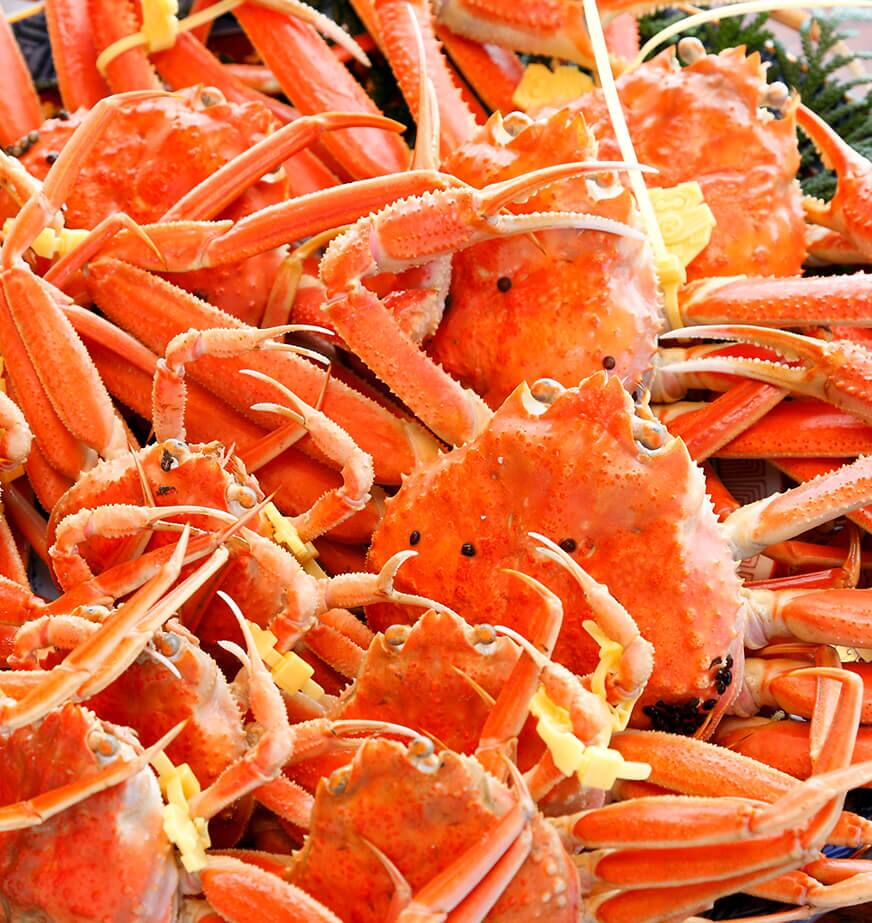 日本海の冬の味覚といえば「越前がに」です。毎年11月に入ると漁が解禁になり、産地である福井県の漁港(越前漁港、三国港、敦賀港、小浜港など)は一斉に活気づきます。「越前がに」とは、オスのズワイガニのこと。この種はオスとメスでサイズが大きく違い、漁獲されている地域の多くでは、雌雄で別の呼び方がされています。