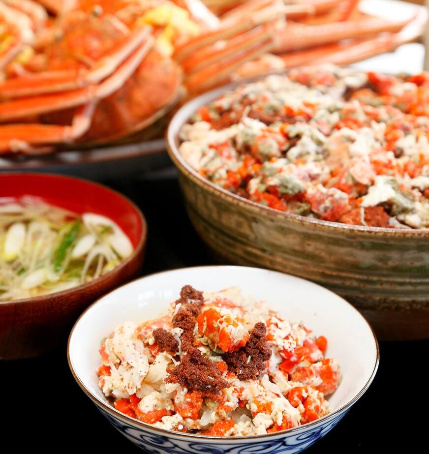 開高は福井で味わった、旬のセイコガニ(特にミソ)をたっぷりと使った丼を絶賛しました。その逸品は地元の老舗旅館「こばせ」のオリジナルで、今も「開高丼」として提供されています。現在はコース料理内や他の料理と合わせた注文のみですが、セイコガニの内子、外子、カニの身、すべてがたっぷりと盛られる贅沢な丼は圧巻。一度は味わいたいと全国から食通が訪れます。なお、開高丼は同店のオリジナルですが、「越前セイコガニ丼」は他の店舗でも提供があります。ただし、いずれも食べることができるのは、セイコガニの漁期に合わせた例年11月上旬~12月末までです。