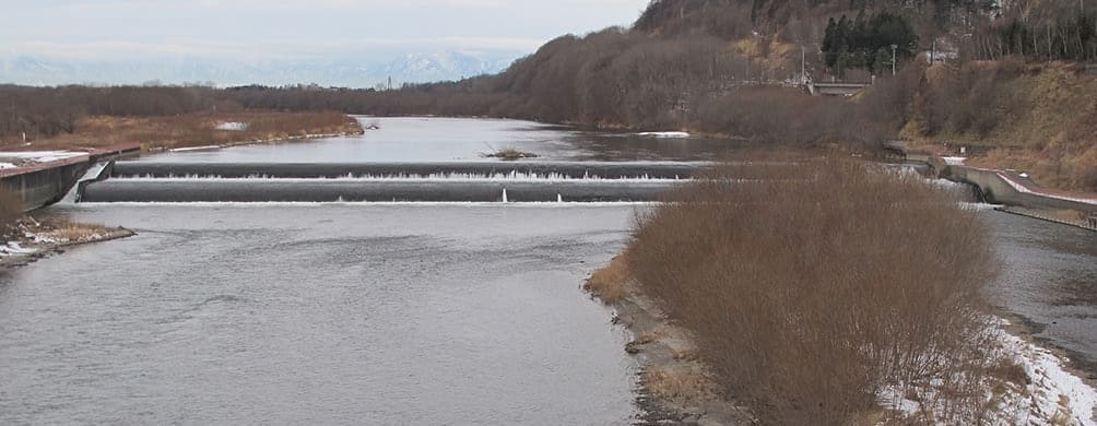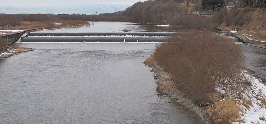 人気ポイントのひとつ、茂岩橋周辺の流れ。アメマスシーズンになれば