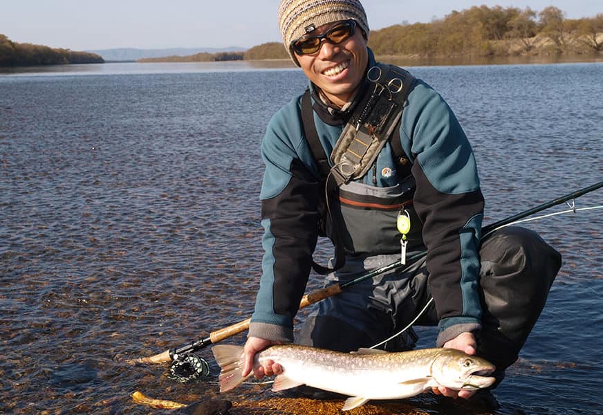 十勝川は、それらの川に比べると、アメマスの数こそ少ないものの、「超」の付く大ものがねらえる川として人気がある。十勝川の上流域と中流域の本流、そして支流は野生のニジマスの楽園としても屈指だが、晩秋から初冬のこれからの季節、下流部ではアメマスの反応がよくなる。