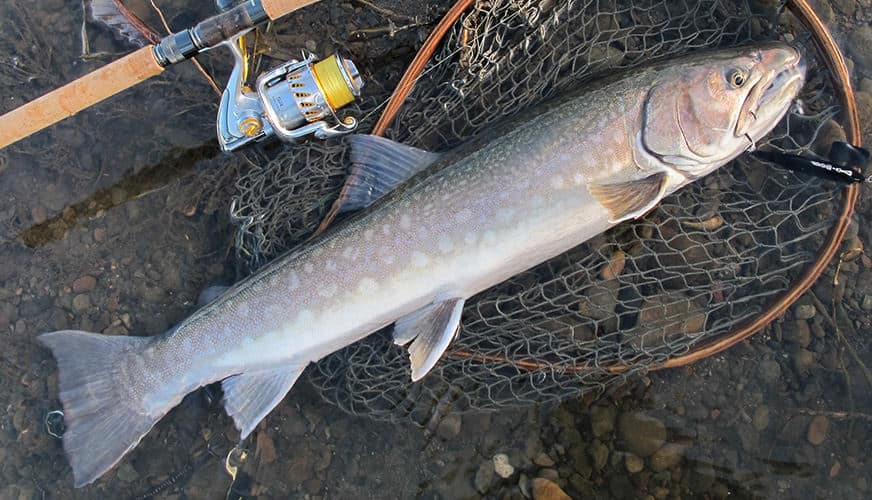 北海道は雪がちらつく11月に入ると、道東を中心に河川のアメマス釣りで賑わう。おもな釣り場は釧路管内を流れる茶路川、音別川、釧路川、別寒辺牛川などだ。