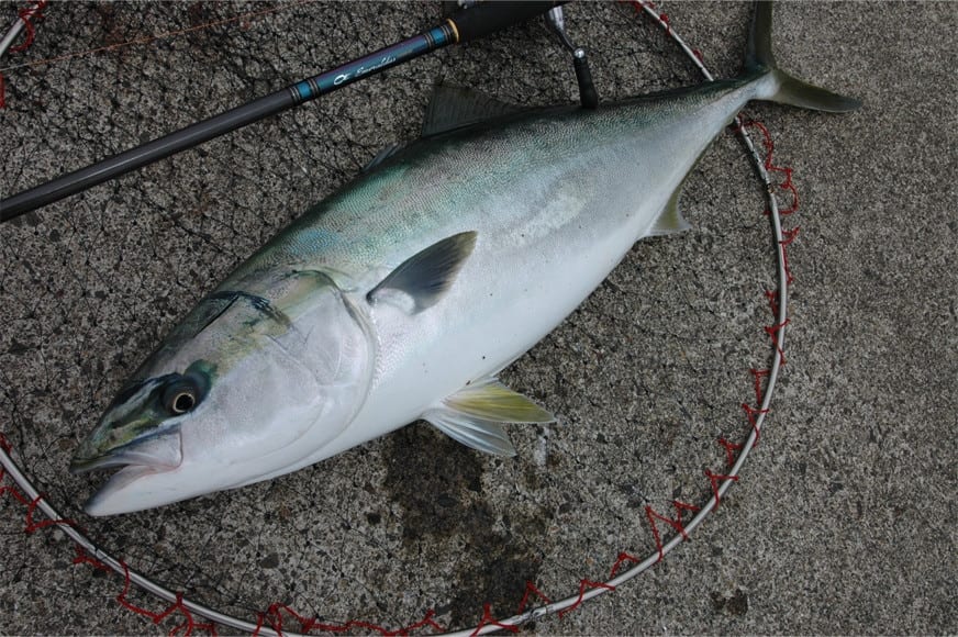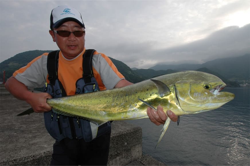 シイラ、イナダ、アオリイカ。すべて同じ日に田子の沖堤防でルアーを襲った。このほかキジハタやカサゴの釣果もあった