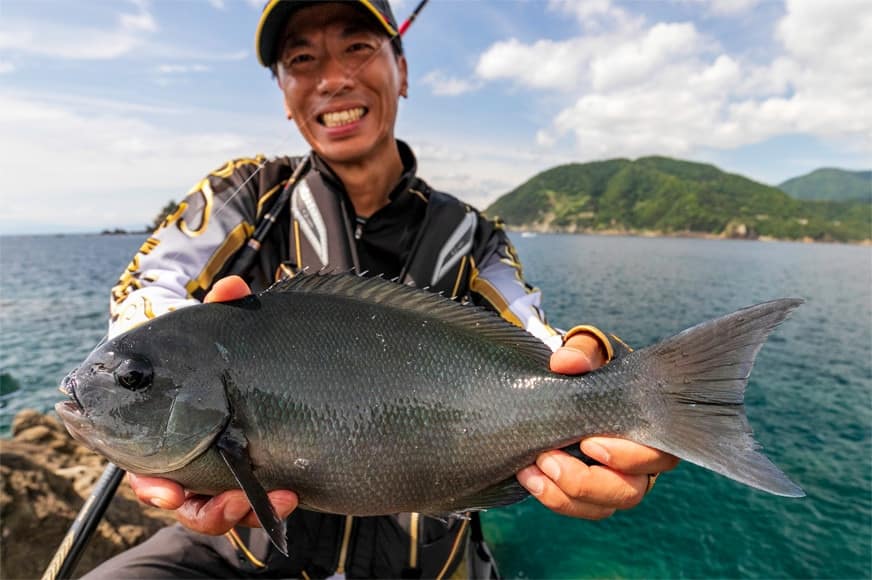 2月下旬~3月のシーズン終盤は50cmオーバーの超大型メジナの実績がある。また、駿河湾の水温は若干低い傾向があるためほかの釣り場がなかなか本格化しない9~12月の高水温期でもコンスタントに40cmオーバーのメジナをねらうことができるエリアとして知られている。足もとから水深10mあるドン深の磯も多く、メジナだけでなくマダイやイシダイ、クロダイの大型も期待できる。