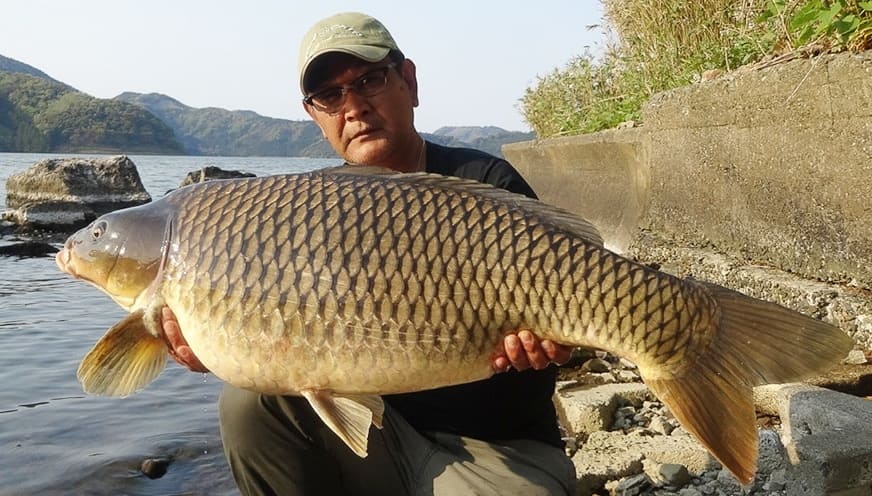 そんな水月湖だが、コイの生育にも理想的な環境を備えている。海水と淡水(真水)が入り混じる汽水域は1年を通じて水温が安定しており、魚が活動しやすい。また、シジミなどのコイのエサが豊富だ。豊穣なこの地で育ったコイの引きはパワフルで、ほかの湖で釣れるコイとは引きの強さが一味も二味も異なると熱心なファンは言う。