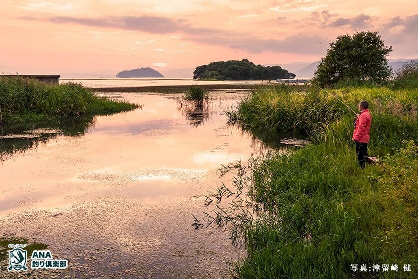 10月 北湖は自然豊かな風景が広がり多くの魚種が生息している。夕焼けに染まる中、タナゴやフナの魚信を待つ