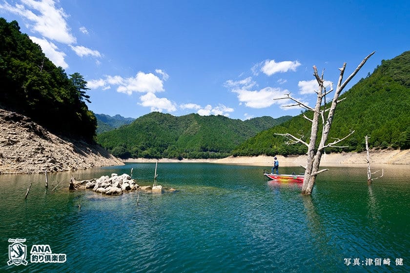 9月 紀伊半島の山間部にある池原ダムはラージマウスバスの釣り場として知られている。ダム湖特有の立木や岬の馬の背など、釣りファンを魅了するポイントでいっぱいだ。