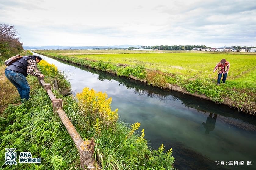 11月 琵琶湖へ流入する大小の河川にはマブナやタナゴなどが生息している。足もとの水草の中を小さな魚影が見え隠れしていた。短竿でそっと水草の脇へエサを落とし込む。