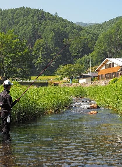 春の千曲川で盛んな釣りは渓流釣り。特にヤマメやイワナをねらう渓流釣りは地元でも人気があり、県外からも多くの釣り人が訪れる。釣り場となるのは、おもに千曲川旅情の歌の中で読まれている佐久から上流のエリアだ。