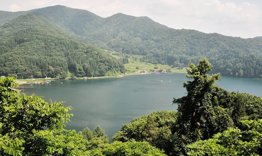 斑尾、黒姫、妙高山の懐に抱かれた湖