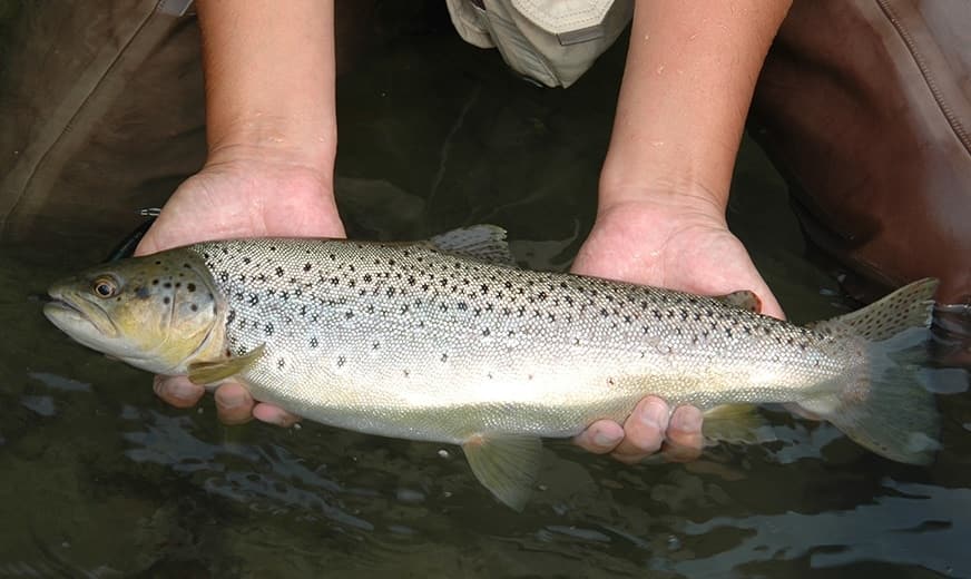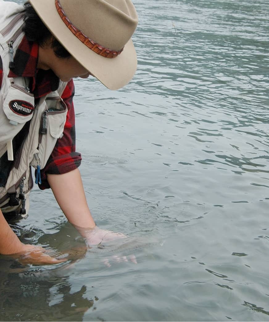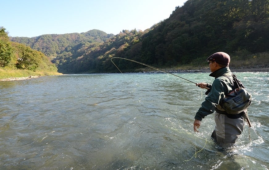 松本盆地を南から北に向かって流れる長野県の犀川は、日本一の長さを誇る大河・信濃川の支流にあたる。水量豊富な流れは、昔からニジマス、ブラウントラウト、ヤマメ、イワナなど多くのトラウトたちを育んできた。
