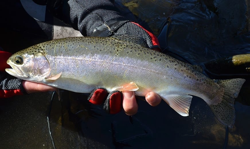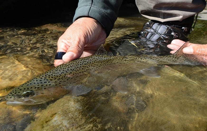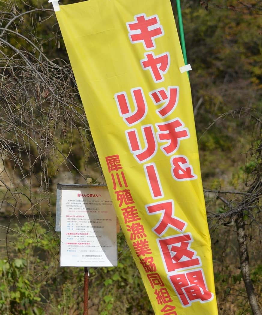 現在、犀川下流部(犀川殖産漁協区間)の釣り場は、大半が「キャッチ&リリース(C&R)」区間になっている。釣ったニジマスは生きたまま流れに戻し、使用できるハリはエサ釣り、ルアー、フライと釣り方にかかわらず、基本的に1本バリ、ルアーでも最大2本バリまでというのがルールだ。