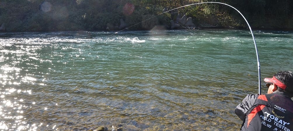 エサ釣りではサオは10m近い本流ザオを用意し、イトは大ものを前提に3号くらいの通し仕掛けで、ハリは12~16号クラスの大もの用を使う。エサは釣りエサ用のミミズのほか、数粒をガーゼにくるんだイクラや、マグロの切り身も有効だ。