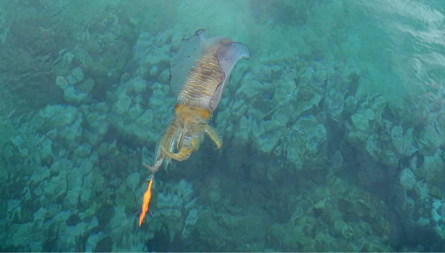 そうした中、比較的コンパクトなルアータックルで楽しめ、なおかつ奄美らしい釣りができるのがアオリイカをねらうエギングと、クロダイをポッパーでねらう通称チニング。アオリイカは本土や沖縄と同じ種類で、クロダイは一帯に生息する亜種のミナミクロダイが主になる。