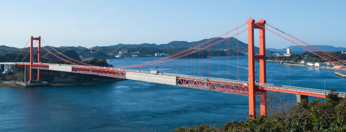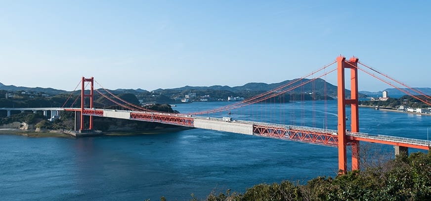 平戸島へは長崎空港から佐世保に向かい、佐世保駅から路線バスか、駅から徒歩5分の佐世保港から出ている高速船などを利用する。