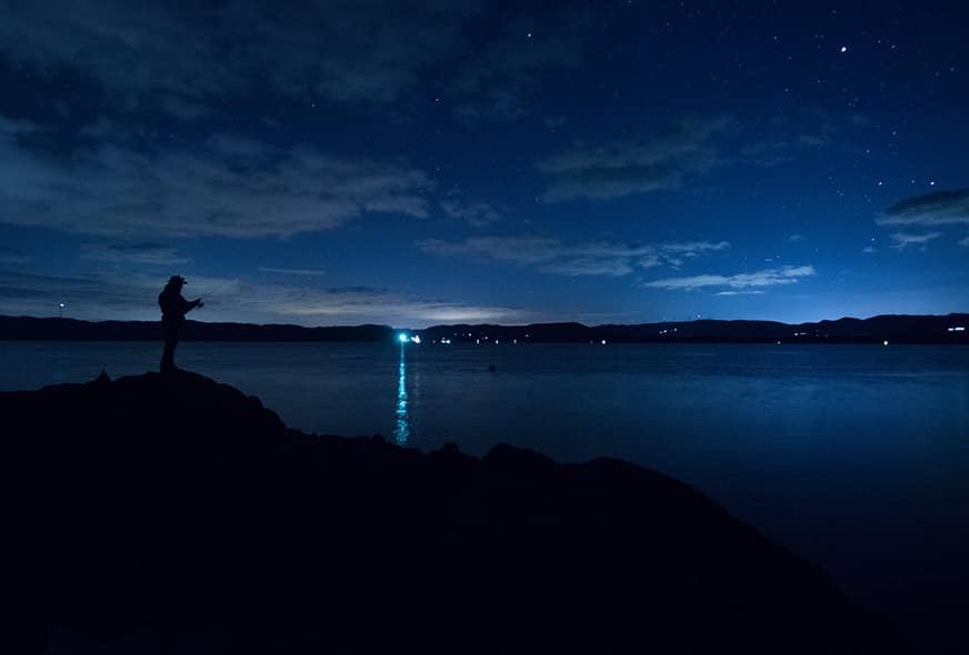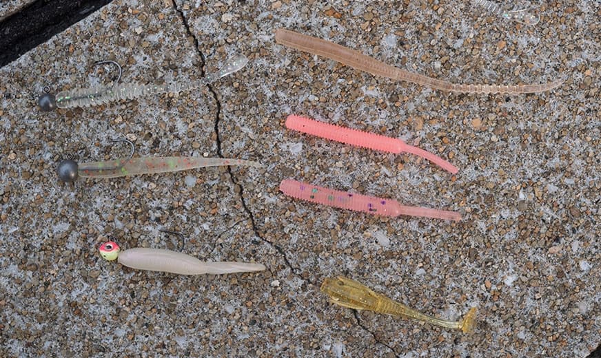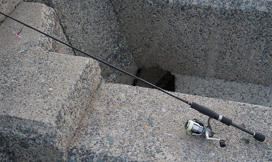 メバルの釣りは夜釣りが一般的で、ジグヘッドと呼ぶオモリの付いた小型のハリにプラスチック製のワームをセットしてルアーにする。ジグヘッドは1~3gくらいの重さでワームの長さは1~3インチだ。いずれにしても軽く、これを外灯の当たっている明暗部(明るいところと暗いところの境目)に投げてゆっくりとリールを巻いてくるだけでいい。表層で釣れなければ、段々と深いところを引いていき、メバルが食ってくる深さを探る。ロッドはサオ先が柔らかめのメバリング用、リールはロッドに合わせた1500~2500番台のスピニングリール、ラインはフロロカーボンの0.8号くらいが目安になる。