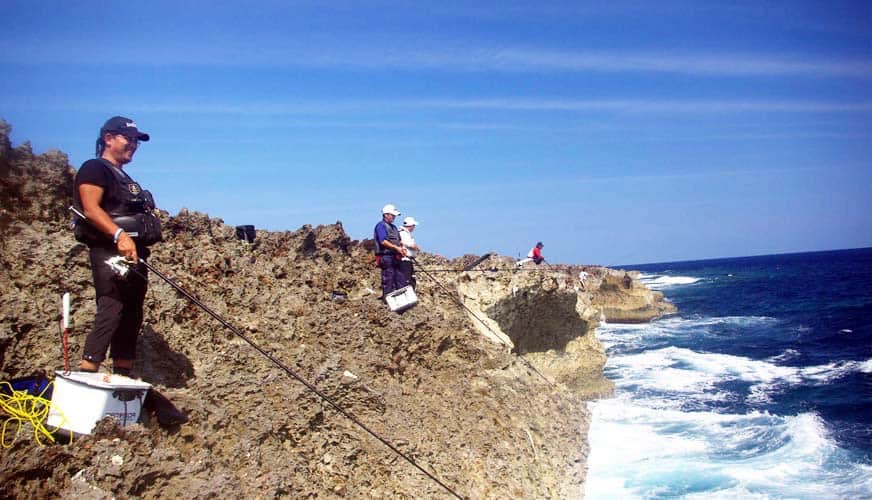 そのほか「北磯」や「リリィーフィールド(ゆり祭りの行なわれる公園)」と呼ばれるポイントは、島の北側に位置する磯で水深があり、魚も多くフカセ釣りや大もの釣りの好ポイント。磯際は手前が深くえぐれたオーバーハングになっていて、掛かった魚は必ずといってよいほど足もとに突っ込むのでスリリングな釣りが楽しめる。伊江島ではこれらの場所で通年釣りが楽しめるが、おすすめは観光にも向いた5~12月だ。なお、伊江ビーチのすぐそばには「わびあいの里」という平和学習の場もある。釣りや観光で訪れた際には、ぜひそうしたスポットも訪れてみてほしい。
