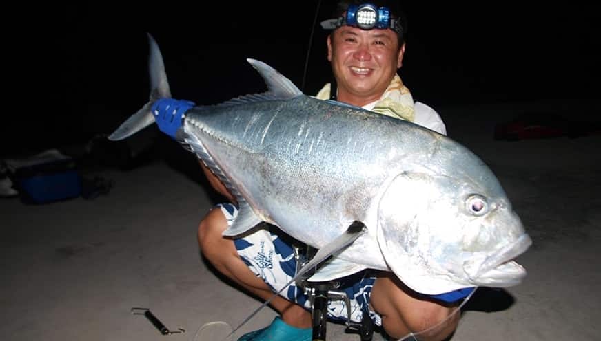 GTフィッシングは、ジャイアントトレバリー(通称GT、和名はロウニンアジ)をねらう釣り。西表島のGTフィッシングの特徴は、ほかのエリアに多い一発大ものねらいではなく、15~35kgクラスを高確率でヒットさせるところにある。初挑戦でも釣れる可能性があり、20kg前後の魚が最も多いが、40kgオーバーという大もののチャンスももちろんある。通年ねらえるが、比較的海況の穏やかな3~11月がハイシーズンだ。