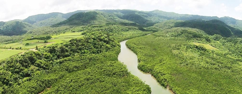 沖縄県で本島の次に大きい西表島。島の90%が亜熱帯のジャングルで、大小40以上の川があり、河口域にはマングローブ林が広がっている。天然記念物のイリオモテヤマネコをはじめ、カンムリワシ、セマルハコガメ、キシノウエトカゲなど珍しい動物も棲息し、東の小笠原諸島などと並んで「東洋のガラパゴス」と呼ばれることも多い。