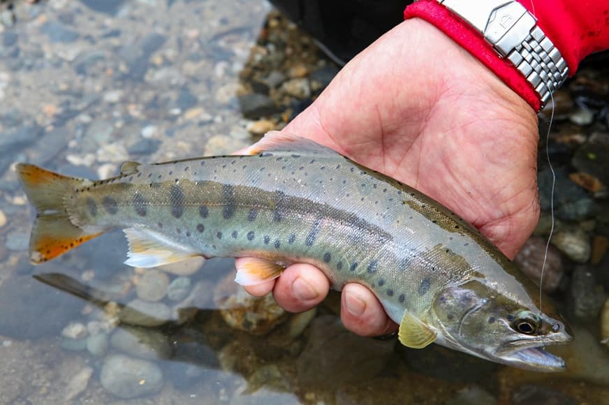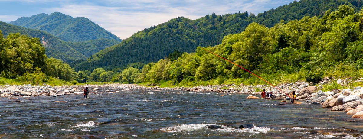 この大型ヤマメをねらって、アユ釣りファンだけでなく、エサ釣りやルアーフィッシングのアングラーも訪れる。こちらのおすすめ時期は、アユ釣りが解禁となる前までの7月中旬まで。ただし、アユ釣りの解禁後も、川に人が少なく、なおかつヤマメなどの渓流魚の活性が高い朝夕のマヅメ時などであれば、充分に大型をねらうチャンスがある。アユ釣りの人が増える日中の時間帯は、上流や支流を釣るのがおすすめだ。
