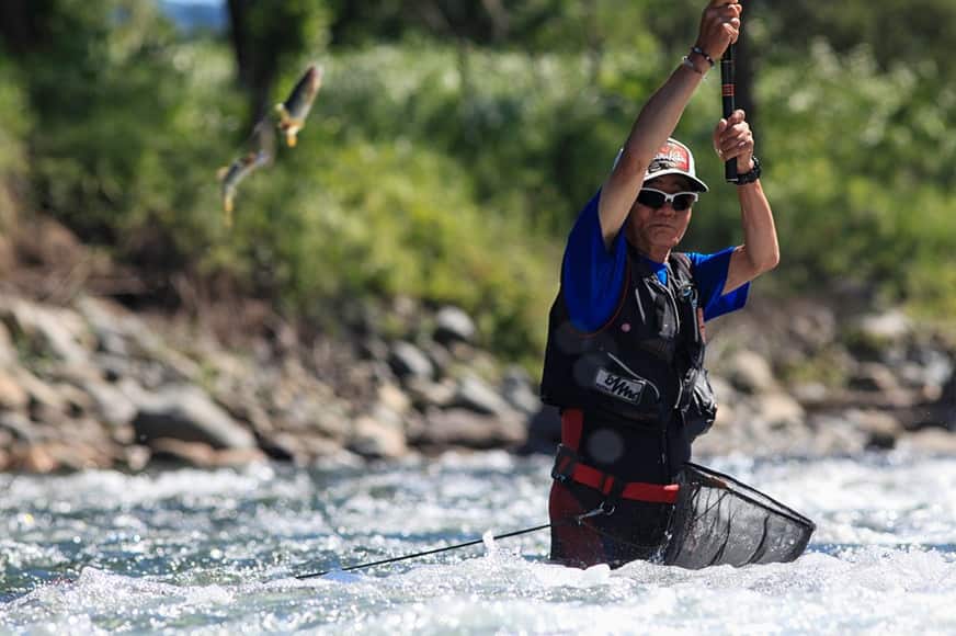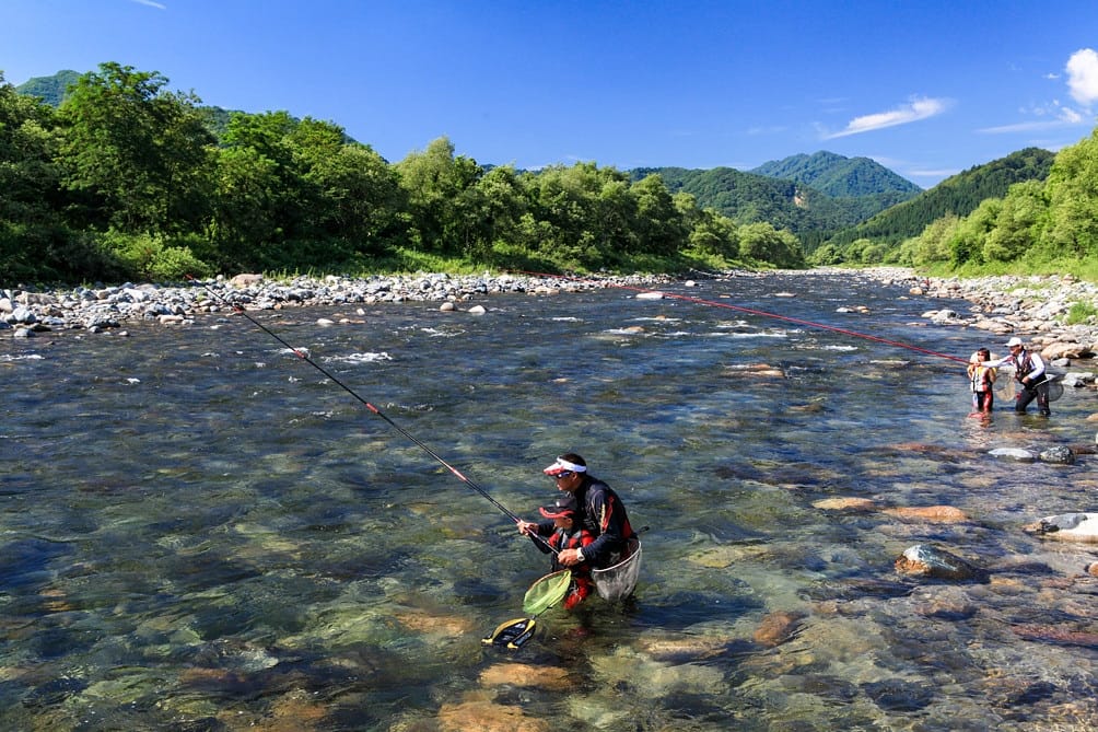 この川に全国から釣り人が集まるのは、なんといっても夏のアユ釣り。良質な水は食べても美味しいアユを育み、釣り場も広いことから、かつては大手釣りメーカーによる全国規模のアユ釣り大会が開催されていたこともある。近年は放流事業も成功し、解禁日ともなれば50尾前後、なかには100尾の束釣りをする人が出る時もある。