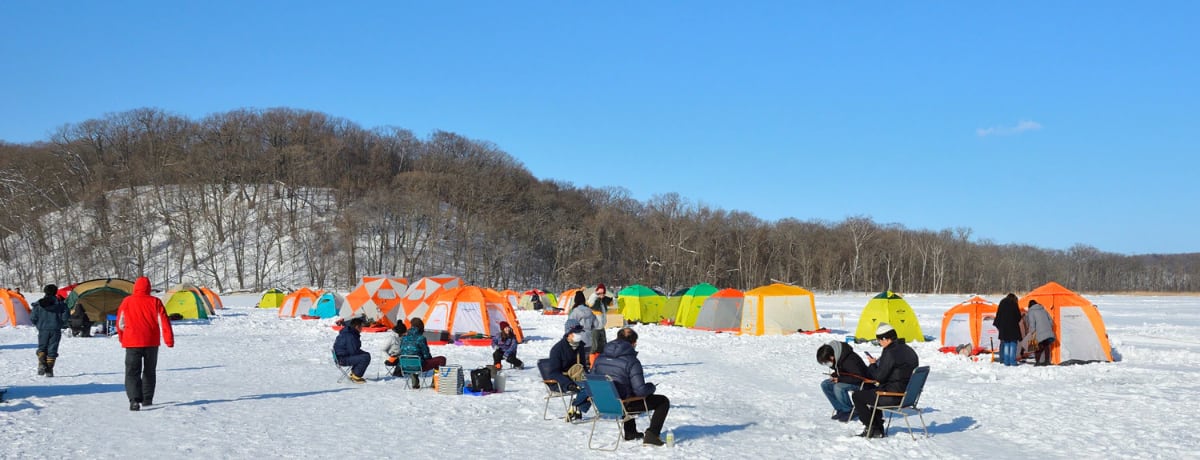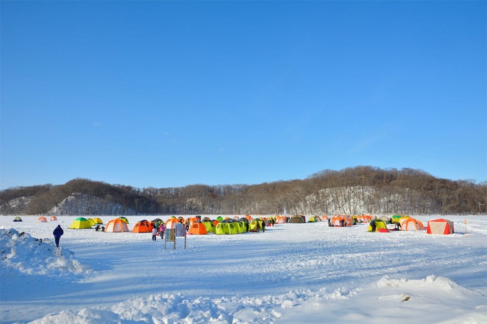 ワカサギ釣りの会場は呼人地区と女満別地区の2ヶ所。解禁期間は氷の厚さなどにより変動するが、近年は1月上旬~3月中旬。事前に確認してから訪れたい。