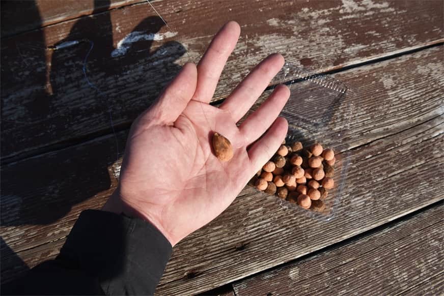エサは、ダンゴにした練りエサ。初心者、子どもも難なく簡単に扱うことができる。