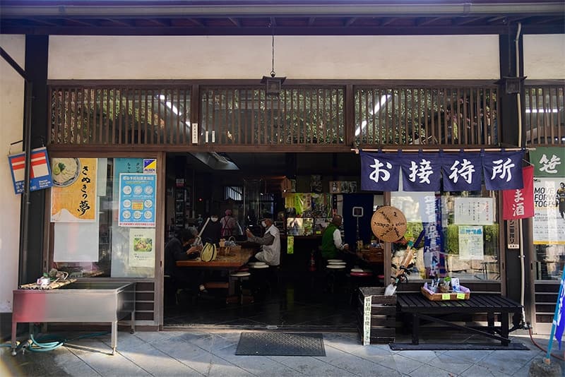 また、隣接するお土産店の店頭では焼きだんごや名物のこんにゃくなども販売。特に紅葉のシーズンはお遍路さんや観光客でにぎわいを見せます。