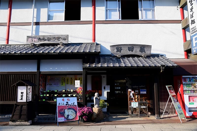 現店主の祖父が露天商としてお土産を販売していたのが「野田屋」の始まりです。この地を訪れるお遍路さんの増加に合わせて食事を出すようになり、1968(昭和43)年に大窪寺門前にお店を構えました。