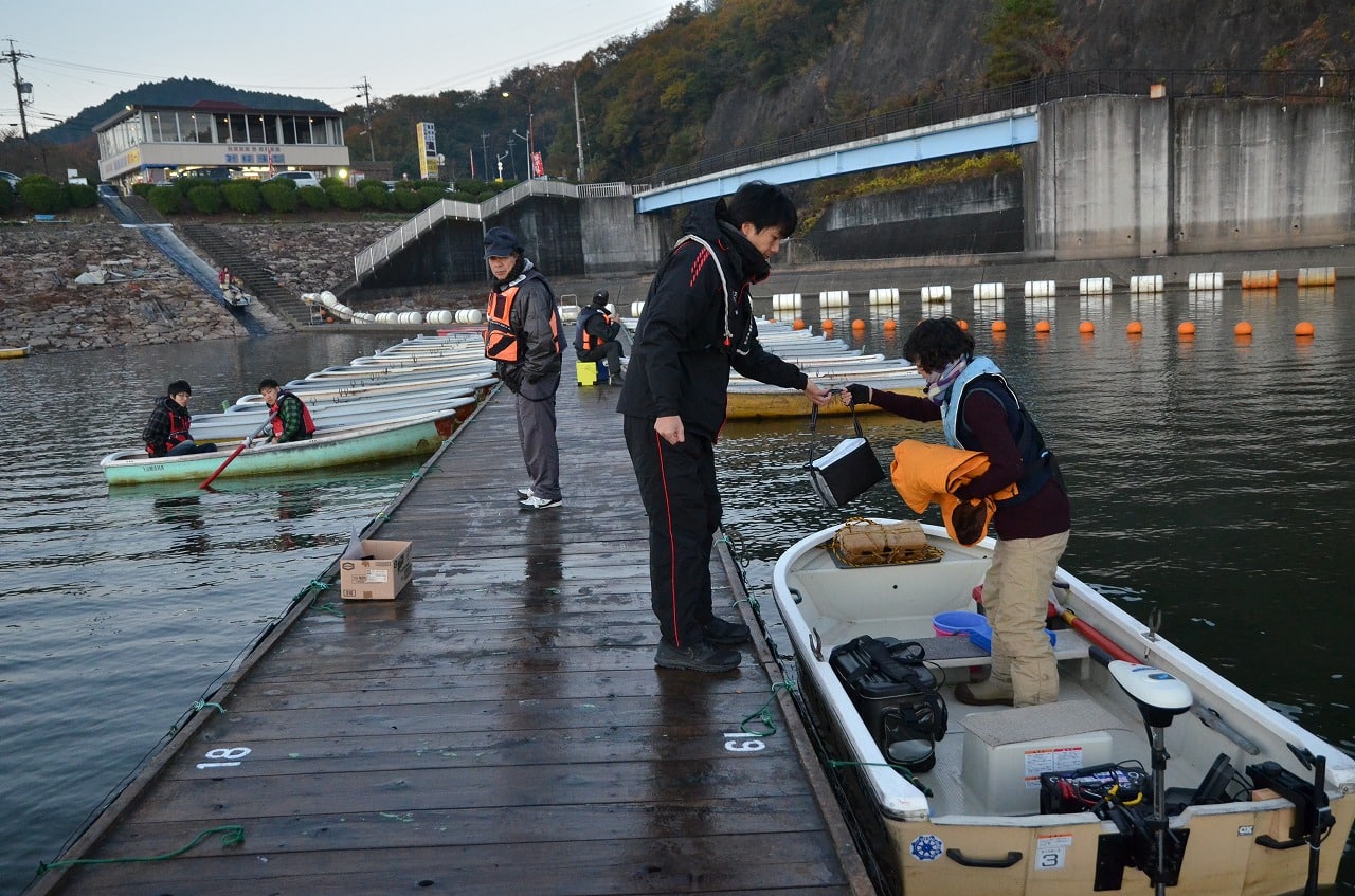 ボートのワカサギ釣りが未経験でも不安を感じる必要はない。当日の手順は簡単。まずは開店に合わせて店頭で受付。手漕ぎボートもしくは免許不要のエレキモーターボートのいずれかを借り、準備を整える。受付時によく釣れている場所を教えてくれるので、出船前にマップを使って位置を確認しておくこと。ボートを架けてある桟橋へ向かうとスタッフの方々が乗船をサポートしてくれる。ボートを出したら受付時に聞いたポイントを目指そう。