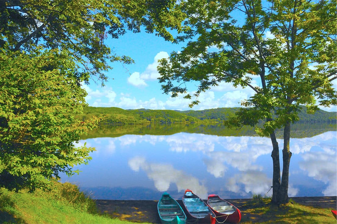 塘路湖周辺からは、カヌーで釧路川を下ることもできます。釧路川は護岸工事が行われていないため、ダイナミックな水辺の自然にそのままアプローチ。湿原の奥では、タンチョウやエゾシカ、オジロワシ等野生の動物に出くわすこともあるかもしれません。カヌー体験には事前予約が必要です。