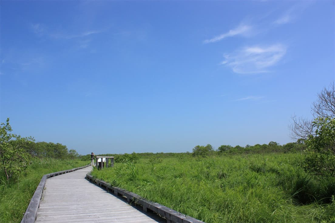 釧路湿原を散策するのにもってこいなのが、西側にある「温根内木道」。湿原そのままの高さの遊歩道には、3つのコースがあり、500mから3kmまで選ぶことができます。木道のすぐそばに湿原が広がるため、植生を観察しながら歩きましょう。7月中旬から8月上旬の夕方から夜にかけてはヘイケボタルが見られることもあります。