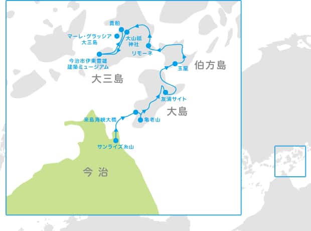 これから1日かけて大島から伯方島、大三島を巡ります。