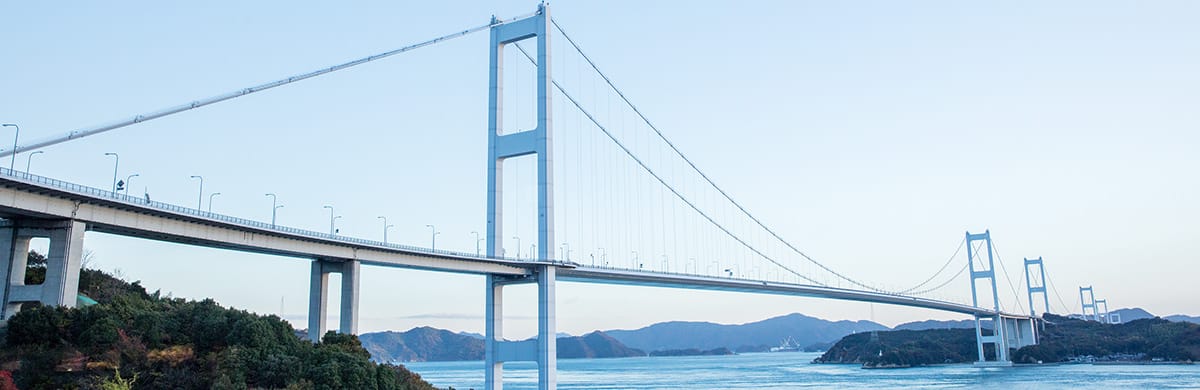 来島海峡大橋:今治と大島を結ぶ4kmの来島海峡にかかる3つの吊り橋の総称