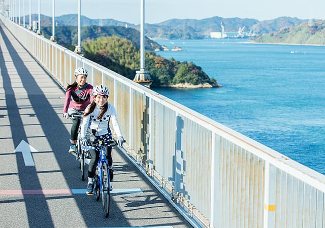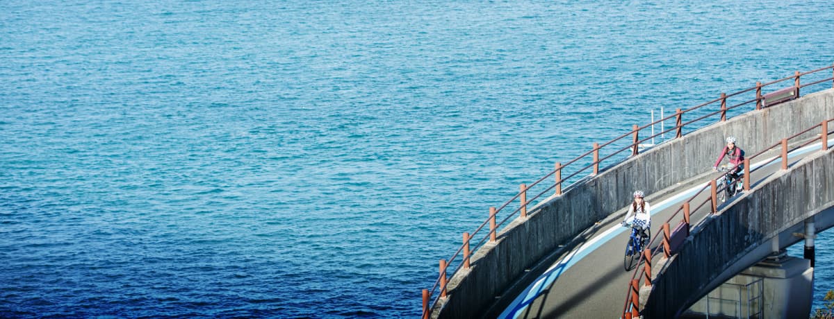 愛媛県・今治と広島県・尾道を結ぶ「瀬戸内しまなみ海道」。全長約70kmのサイクリングコースは、日本初の海峡を横断できる自転車道。サイクリストの聖地として、盛り上がりを見せています。