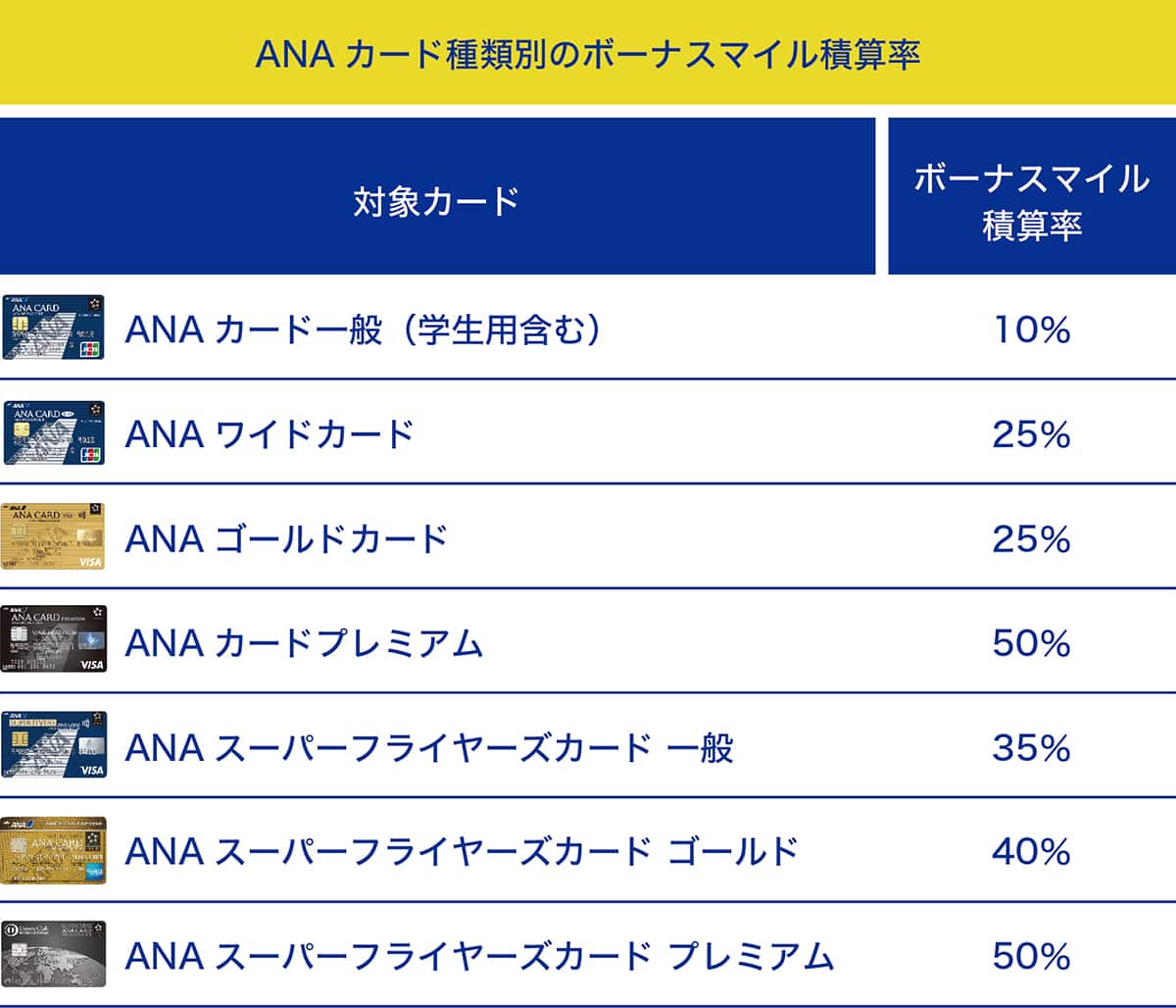 つまりANAカードを持っていれば、フライトマイルの積算率が低い割引運賃を利用しても、ボーナスマイルを獲得できるため、結果的に獲得するマイル数を高い水準にキープできるのです。