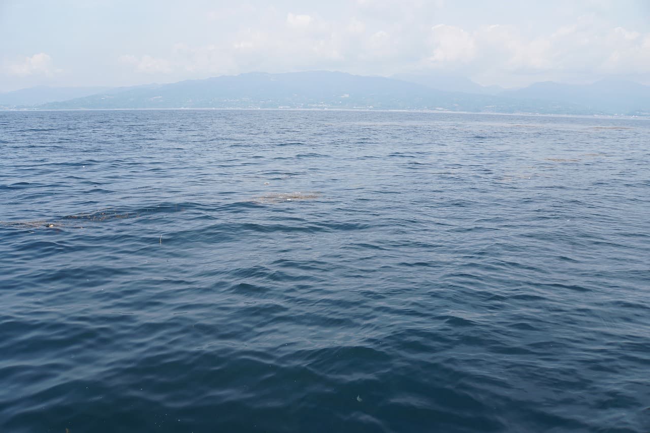シイラ釣りは大海原をクルージングすることから始まります。この釣りで大切なのはシイラの群れを見つけること。広い海の上でその場所を見つけるのは簡単ではありませんが、シイラは海上の浮遊物の周りに好んで居着く性質もあるため、相模湾には複数設置されているパヤオ(浮き漁礁)は典型的なチェックポイントになります。また、海に出来た潮目(流れの筋)には、流れ藻や流木などの浮遊物が集まりやすく、船長はそうした何かも常に船上から探しています。さらには、シイラは小魚を追っていますので、それらの群れがいる場所ではボイルと呼ばれる、シイラが小魚を海面に追いたてることでできる波立ちや跳ねが見られます。シイラ船に乗ったら、船長はもちろん、お客さんもそれぞれに海に目を配り、「ボイル!」などと声を出して知らせるので、魚探しを一緒に楽しみましょう。