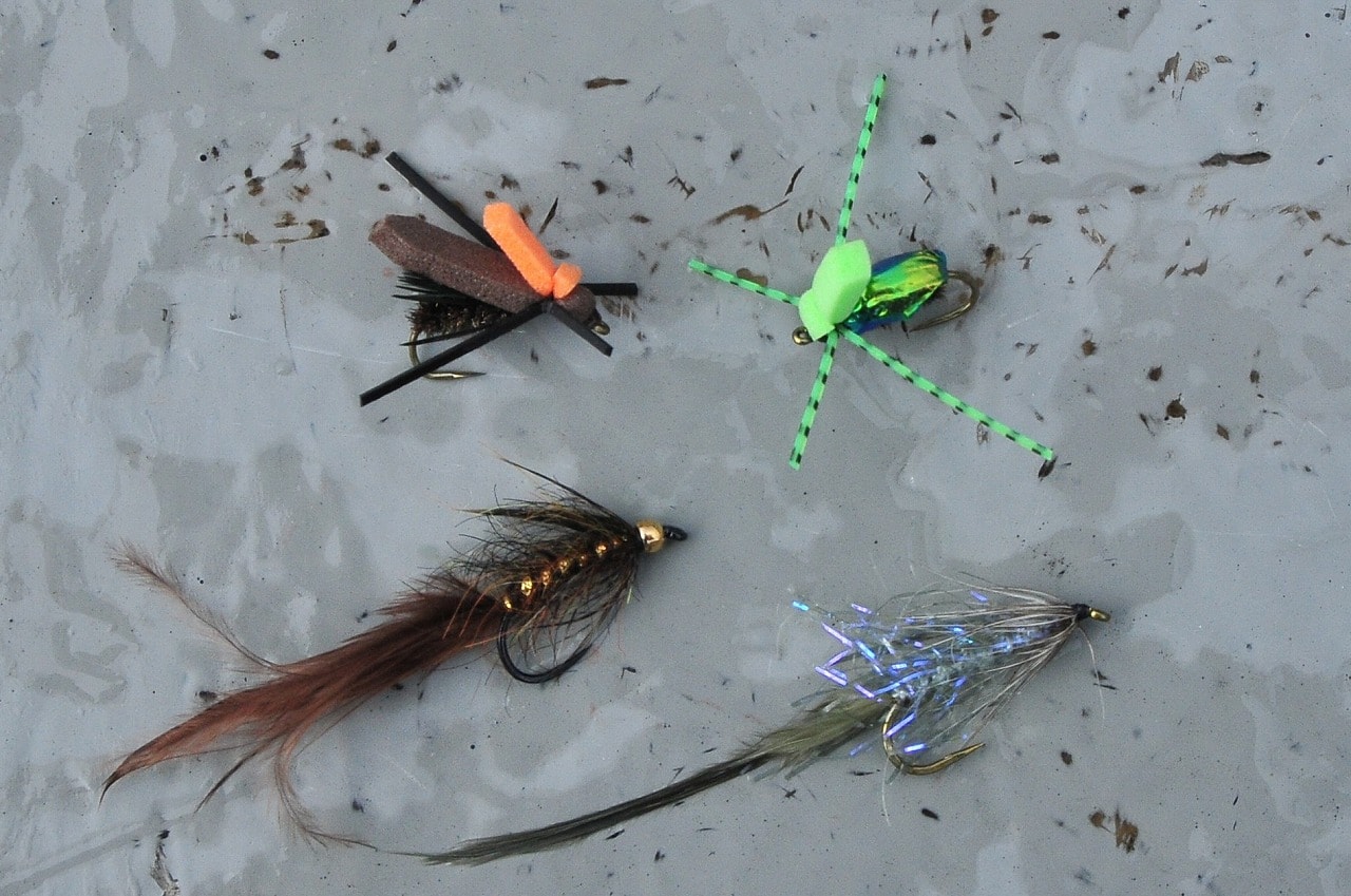 フライ(毛バリ)のおすすめは、コガネムシやカメムシを模したドライフライです。なかでもフォームビートルなどの名前が付けられている、発泡素材を使ったフライはいかにも湖に落下する甲虫の雰囲気があり、ニジマスの反応もよく、また繰り返しキャストしても沈みにくいといった特徴があります。フライショップや通信販売で入手できるので、ぜひ入手して使ってみてください。