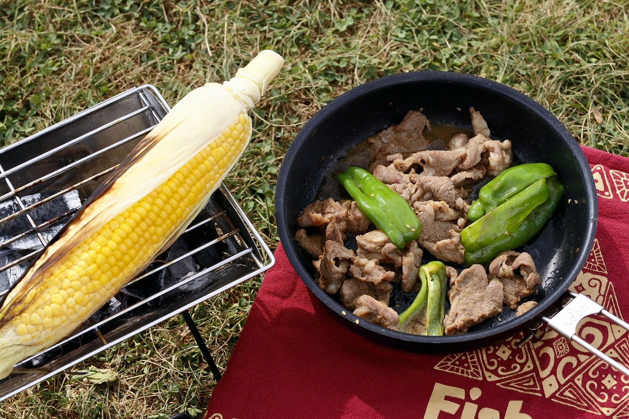 ソロテントを設営し、チェアとテーブルをセッティング。そして焚火台で炭をおこせば、ぜいたくな1人ジンギスカンの宴がスタート。この日の釣りを振り返りつつ、やわらかいサフォークの肉を噛み締めます。「北海道は釣り、キャンプ、そしてツーリングのどれをとっても、誰もが憧れる最高の場所のひとつだと思います」と小野さん。広々とした風景の中を走って、きれいな渓流を歩いて魚と遊んで、美味しいジンギスカンをいただく……。